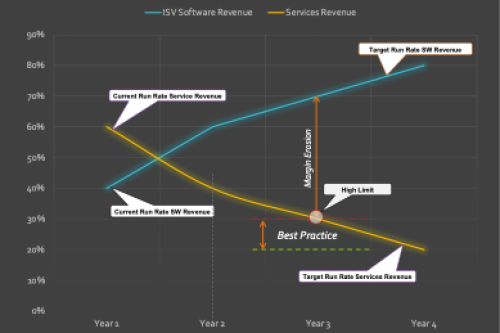 At an enterprise level, Independent Software Vendors (ISVs) are organizations that create and sell software products, often specializing in specific business needs or industry verticals.  ISVs have traditionally generated their revenue through the sale of software licenses. However, the business model for many ISVs has evolved, with an increasing emphasis on service revenue for platforms requiring implementation, integration and support.  While service revenue can provide a steady income stream, an over-reliance on it can have several negative effects on corporate profitability. This document explores the challenges associated with a high service revenue contribution and its impact on profitability.